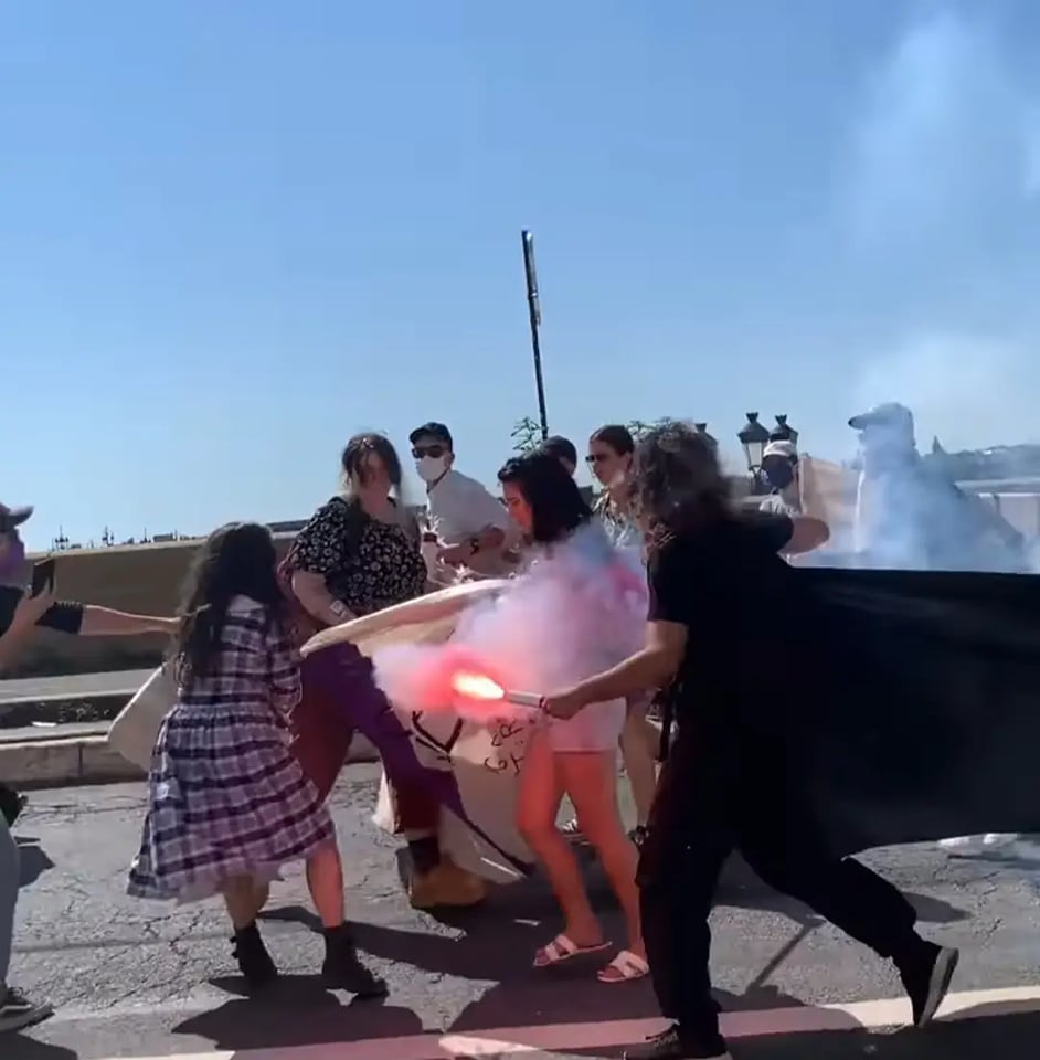 Lors de notre action de visibilité lesbienne à la Marche des Fiertés de Bordeaux, noues avons été attaquées par un groupe « antifa » dont l’un de ses membres à essayer de noues brûler