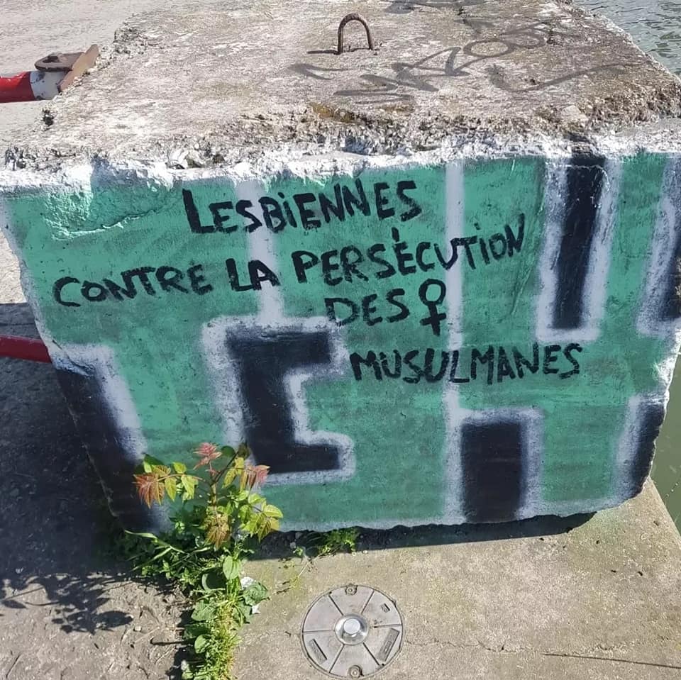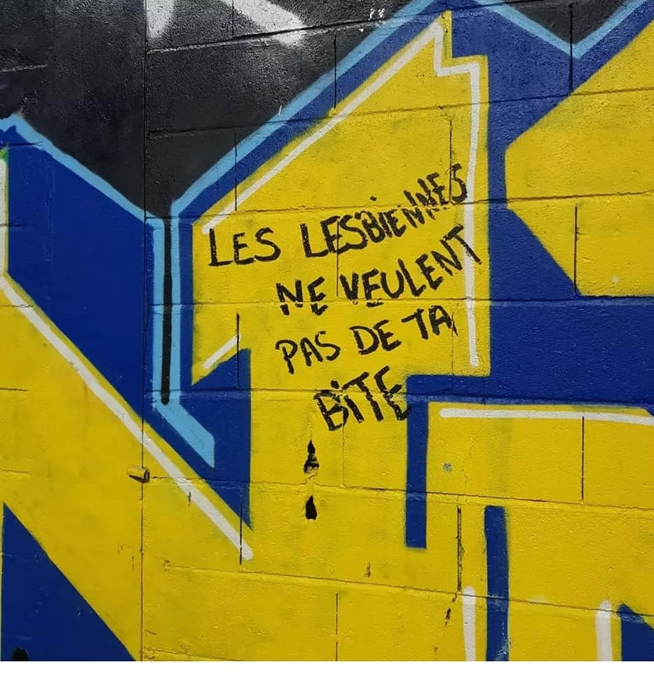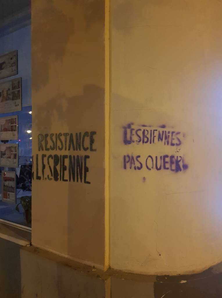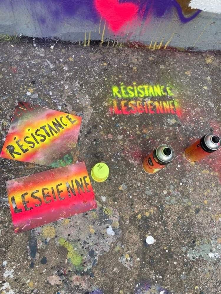 Pour la Journée internationale de la visibilité Lesbienne, noues avons peint nos slogans pour les inscrire dans l’espace public à Paris. Noues noues réapproprions cet espace public dont les lesbiennes sont chassées par la violence des hommes, en particulier par la lesbophobie conservatrice et la lesbophobie des queers.