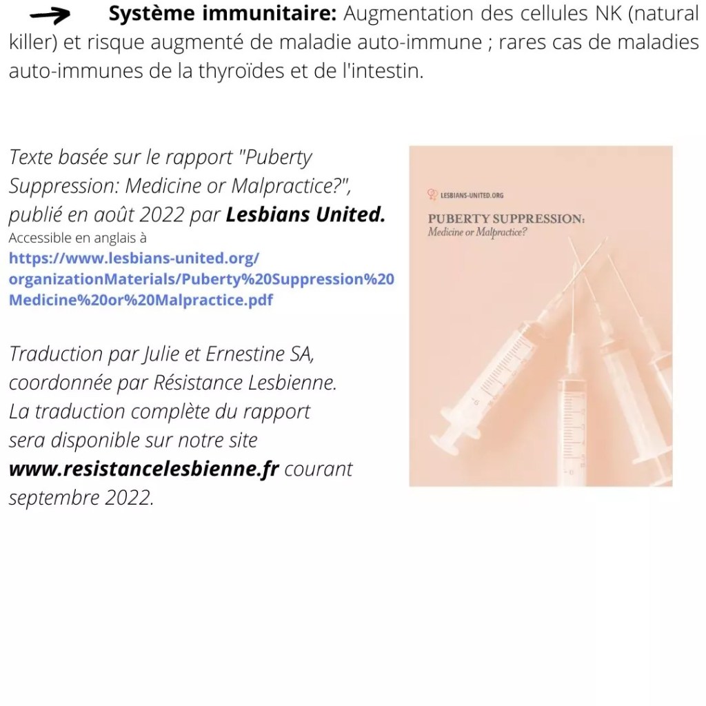 Nous sommes très fières de pouvoir publier sur notre site la traduction française de « Bloqueurs de Puberté: Médecine ou Mauvaises Pratiques? ». Cette traduction a été faite par Julie et Ernestine SA (MERCI à elles!) et coordonnée par Résistance Lesbienne.