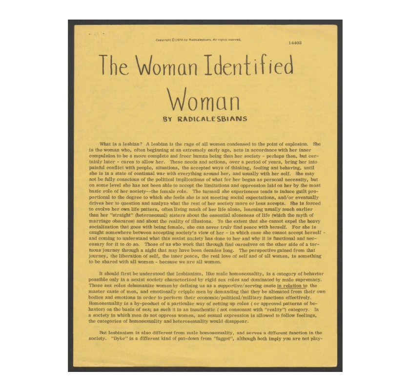 Traduction principalement DeepL de La Femme-identifée-Femme, texte fondateur des lesbiennes féministes, radicales et politiques anglophones écrit par le groupe radicalesbians en 1970 et distribué lors d’une action protestant l’exclusion des lesbiennes d’une conférence féministe nationale aux Etats-Unis – que l’on retient comme la protestation « Lavender Menace » Qu’est-ce qu’une lesbienne ? Une lesbienne est la rageLire la suite « The Woman-Identified-Woman »
