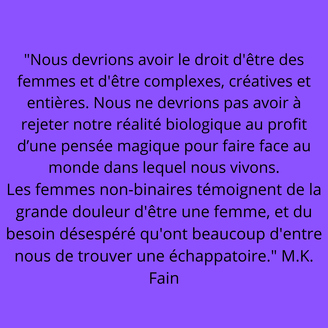 Traduction principalement DeepL, corrigée et coordonnée par Résistance Lesbienne Nous, membres du Caucus des Femmes Noires de Women’s Declaration International USA [Déclaration pour les Droits des Femmes fondés sur le sexe, section étasunienne], pensons qu’il est crucial pour les femmes noires de dénoncer l’idéologie de l’identité de genre. Cette idéologie promeut l’idée que le sexeLire la suite « Communiqué du caucus des Femmes Noires contre l’idéologie de l’identité de genre »