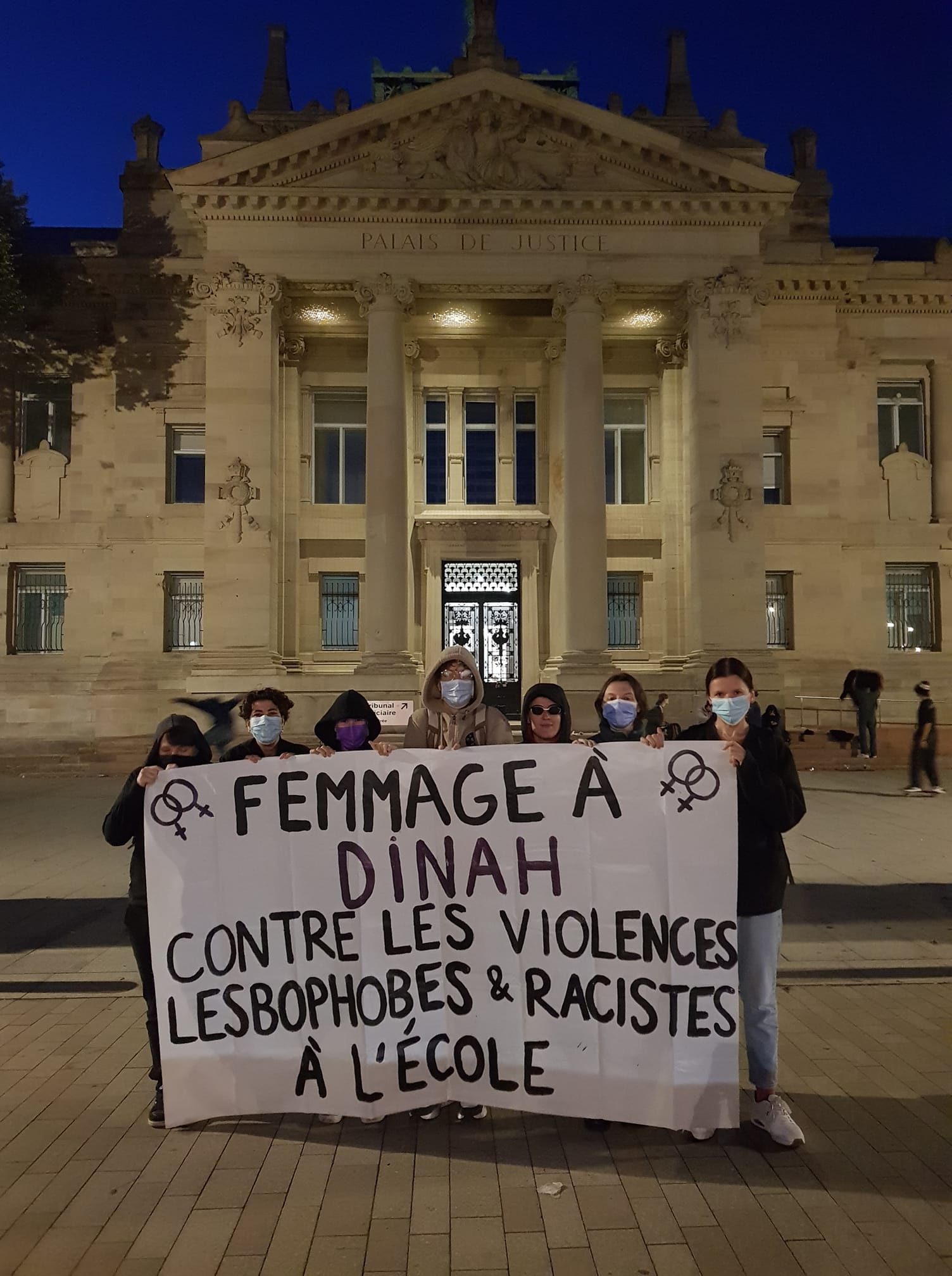 À Strasbourg, nous avons rendu femmage à Dinah, jeune lesbienne alsacienne qui s’est suicidée l’année dernière après avoir subi deux ans de harcèlement lesbophobe et raciste à l’école. Un an après sa mort, l’enquête a été classée sans suite par le parquet de Mulhouse, selon lequel il n’y a pas lieu de parler de harcèlement.Lire la suite « Justice pour Dinah! Résistance Lesbienne à Strasbourg »