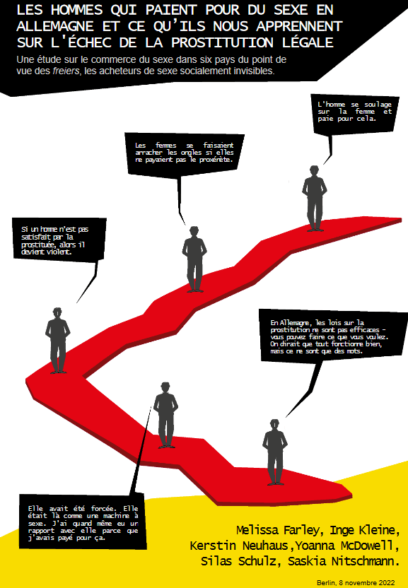 Noues sommes très fières et heureuses de publier la traduction française d’une étude sur la prostitution légale publiée en novembre 2022 par Melissa Farley, Inge Kleine, Kerstin Neuhaus, Yoanna McDowell, Silas Schulz et Saskia Nitschmann: LES HOMMES QUI PAIENT POUR DU SEXE EN ALLEMAGNE ET CE QU’ILS NOUS APPRENNENT SUR L’ÉCHEC DE LA PROSTITUTION LÉGALE:Lire la suite « LES HOMMES QUI PAIENT POUR DU SEXE EN ALLEMAGNE ET CE QU’ILS NOUS APPRENNENT SUR L’ÉCHEC DE LA PROSTITUTION LÉGALE »